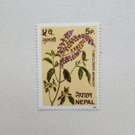 外国邮票 尼泊尔邮票香料植物尼泊尔圣罗勒 新票1枚 如图