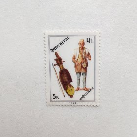 外国邮票 尼泊尔邮票传统民俗服饰乐器萨朗吉琴 音乐 新票1枚 如图
