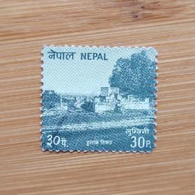 外国邮票 尼泊尔邮票佛塔和自然风光 信销1枚 如图