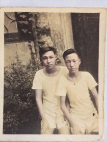 民国时期两帅哥合影照片(敏德相册,敏德应该民国时期毕业于宁波某中学,考取山东省立工业专科学校(1950年改为山东工学院,现为山东工业大学),其女朋友应该毕业于青岛工学院。后就职于电力部北京水利发电设计院,后支援云南来到国家电力部昆明水电勘测设计院)