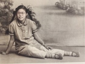 1957年美女坐地上照片(敏德相册,敏德应该民国时期毕业于宁波某中学,考取山东省立工业专科学校(1950年改为山东工学院,现为山东工业大学),其女朋友应该毕业于青岛工学院。后就职于电力部北京水利发电设计院,后支援云南来到国家电力部昆明水电勘测设计院)