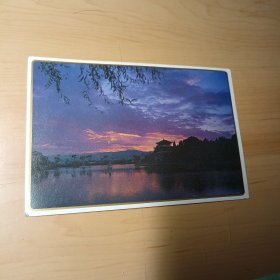 明信片–夕阳湖畔(1986年12月,昆明工学院 写给 北京工业学院32831班 黎斌,后面有一首祝福诗歌)
