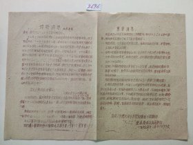 手刻本油印资料 传单 特好消息、重要消息2份