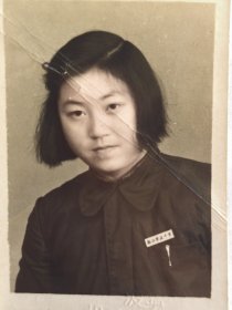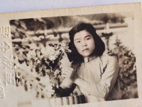 1954年美女佩戴浙江宁波中学校徽照片(敏德相册,敏德应该民国时期毕业于宁波某中学,考取山东省立工业专科学校(1950年改为山东工学院,现为山东工业大学),其女朋友应该毕业于青岛工学院。后就职于电力部北京水利发电设计院,后支援云南来到国家电力部昆明水电勘测设计院)