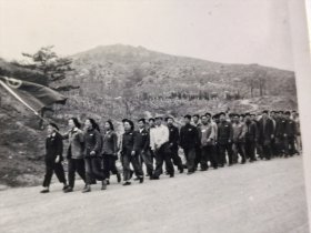 昆明水电院职工在团旗引领下大踏步迈向前方照片(敏德相册,敏德应该民国时期毕业于宁波某中学,考取山东省立工业专科学校(1950年改为山东工学院,现为山东工业大学),其女朋友应该毕业于青岛工学院。后就职于电力部北京水利发电设计院,后支援云南来到国家电力部昆明水电勘测设计院)