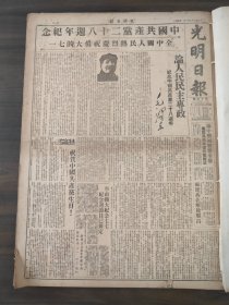 光明日报1949年7月1日全中国人民热烈庆祝伟大的七一,关中歼灭战获全胜,福建西北解放顺昌,铁道部滕代远部长,我筹备旅代表参加第二次世界青年节,辅大燕大,全国铁路职工临代大会今日在平正式开幕